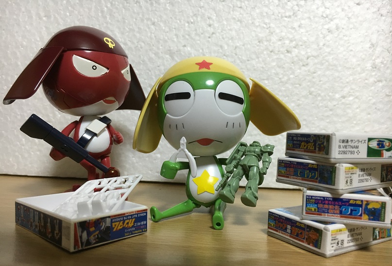 まあ共通パーツの使い回しというのは、ガンプラを始め多くの模型で行われてます。一部を流用することで、少ない開発費で別商品を出せますからね。この「ケロプラ」は特にその恩恵が大きかったようで、商品点数がかなり多くなっています。(アニメの放送期間が長かったというのもありますが)