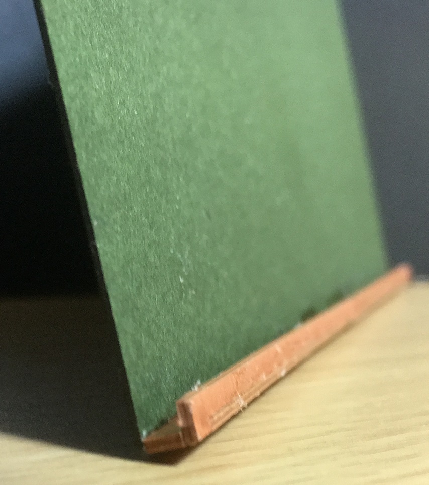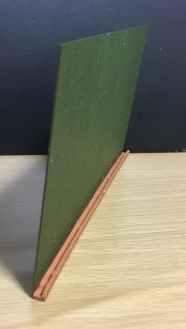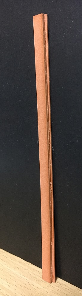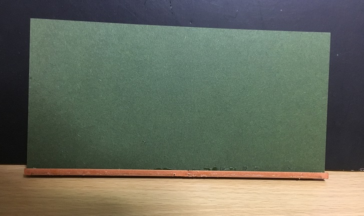 黒板の下の部分(チョーク&黒板消し用のレール)は、ノリしろが殆どない薄くて細長い2枚の板をL字型に貼り合わせて作ります。接触部分の全体を満遍なくくっつけるだけでも大変なのに、垂直を取らねばならず、しかも細長いからボンドがくっつくまで押さえているのも大変でした。