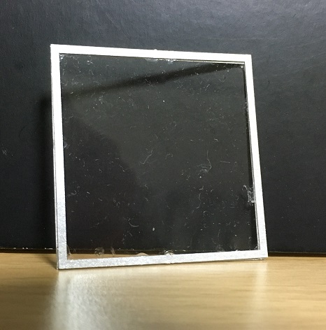 2枚の厚紙を重ねて貼り合わせて「山」の字型の物を作り、それに銀色の薄紙をはめ込みます。