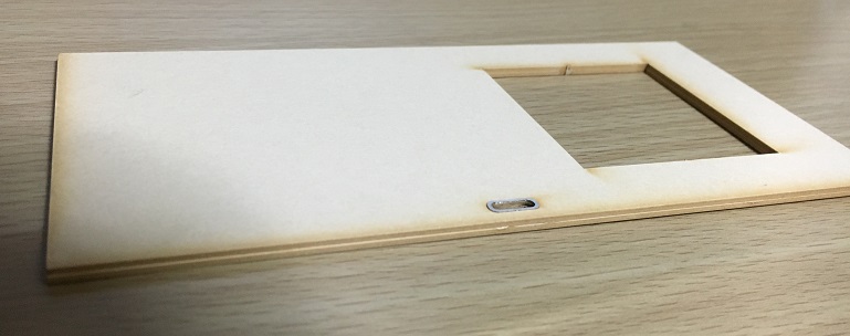 これでスイッチとその周りの部分が完成します。「山」の字型の厚紙2枚を重ねる時、ズレないようにするのが大変でした。