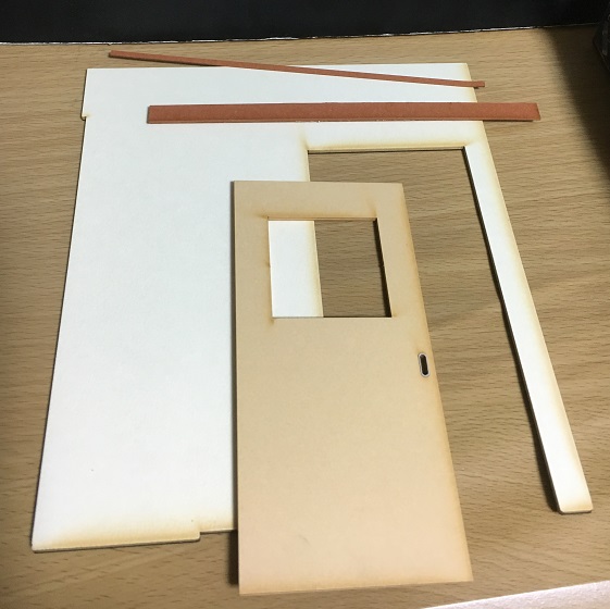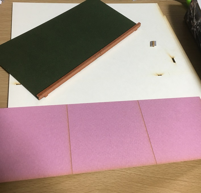 この後、戸と壁と床を仮置きして、レールの柱の貼り付け位置をチェック。