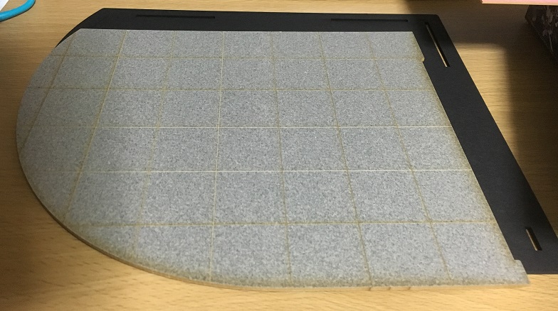 台座となる黒色パーツの上に、床の格子模様が入ったパーツを重ねます。本来は貼りつけるのですが、私はやってません。