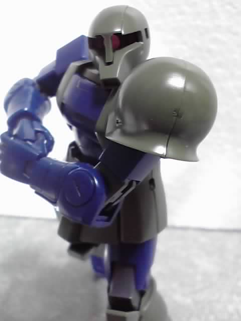 それでヒートホークを持たせられる握り手の方を使ってました。いま考えると武器セットのクラッカーを持たせられそうな気がしますし、それ以前に「旧ザクに武器はいらない」って気もしますが(^3^;)