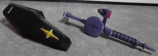 もっとも、シールドが小さい(パックは意外と大きい)ので、仮に開閉できたとしても設定画みたいな2本収納は出来なさそうな気もしますが(-_-;)