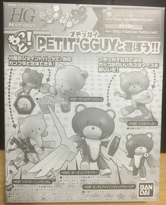 好評なのか、ベアッガイとプチッガイ共に限定版も含めてかなりの種類が出ています。プチッガイの方も只の色違いでなく新規パーツで姿が変わった物も出てきました。もはやアニメ『ビルドファイターズ』『BFトライ』に出ていない物もたくさんあり、独立したカテゴリーの商品となってきてます。
