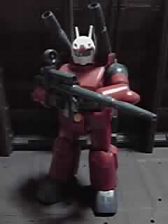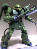 画像は、ザク・マシンガンと脚部3連装ミサイル・ポッドと装備して、腰にヒート・ホークを携帯。グフと並べて、ランバ・ラル隊をイメージしてみました(^u^)/