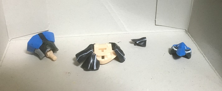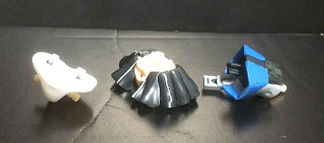 「腹部、腰部、股間部分を並べてみた。これからコレらを組み立てて、胴体下部を完成させる」
