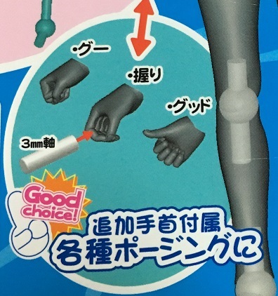 「Mサイズ」との本体サイズ以外の違いは、交換用の首パーツが2つに減ったことと、交換用手首パーツ3種の内の2種が別のポーズのものに代わったこと。「シークレットパーツ」も変更されていますが、詳しくは後述!