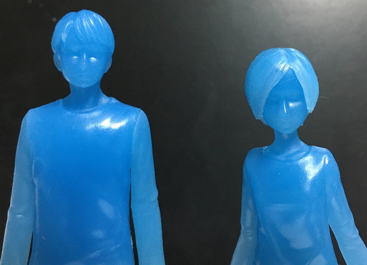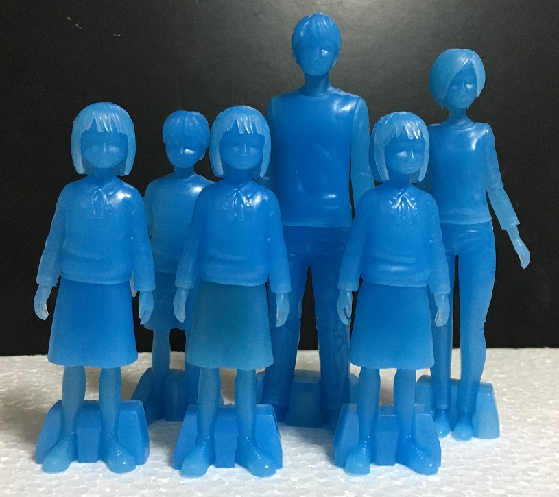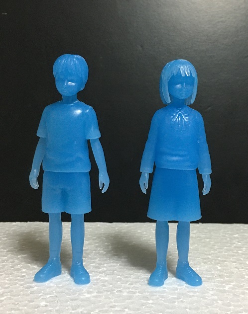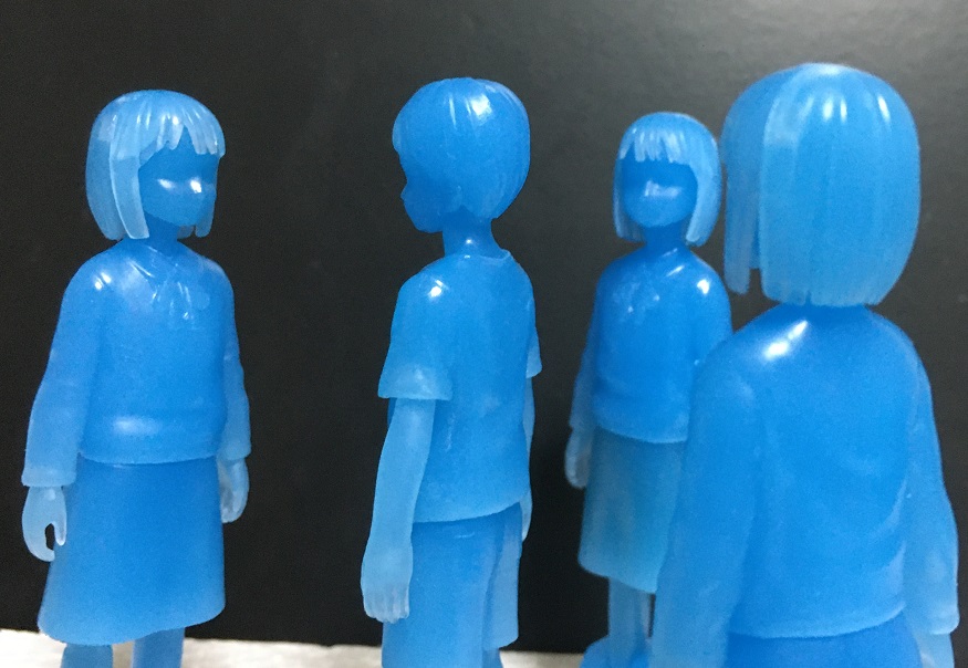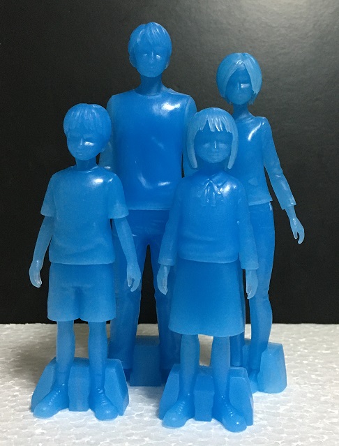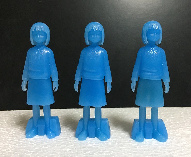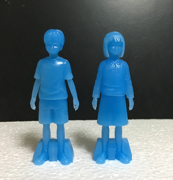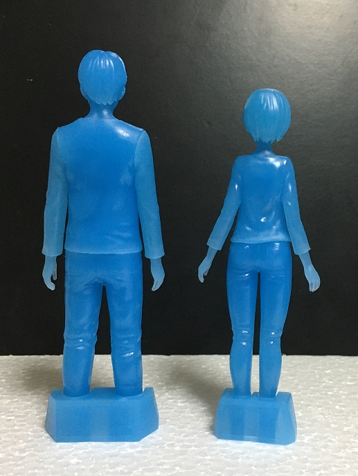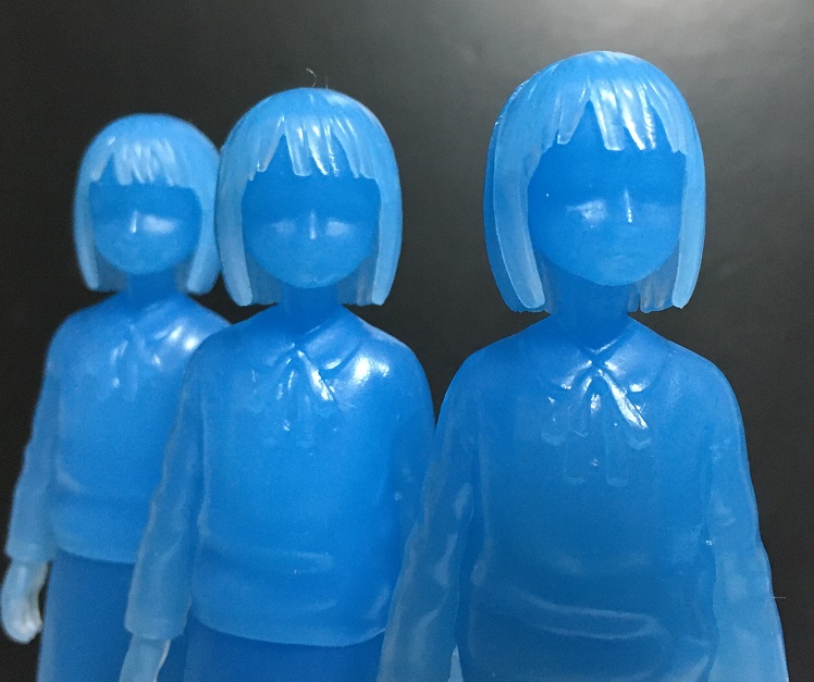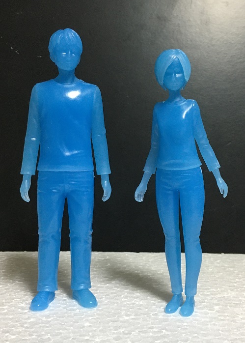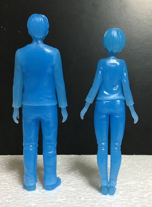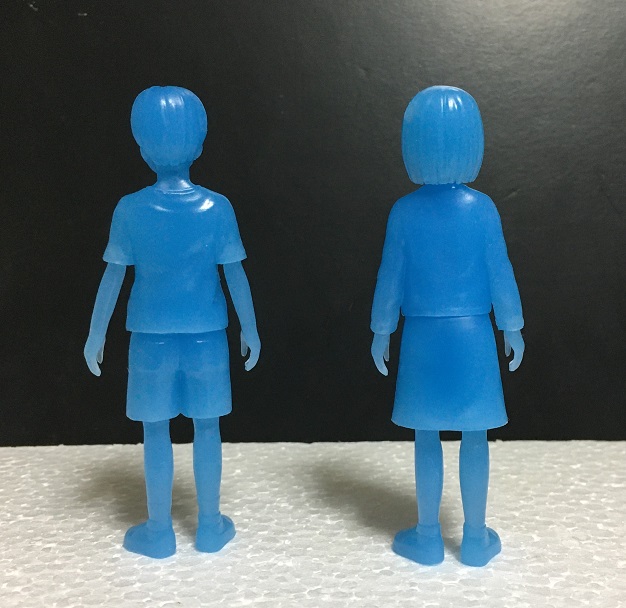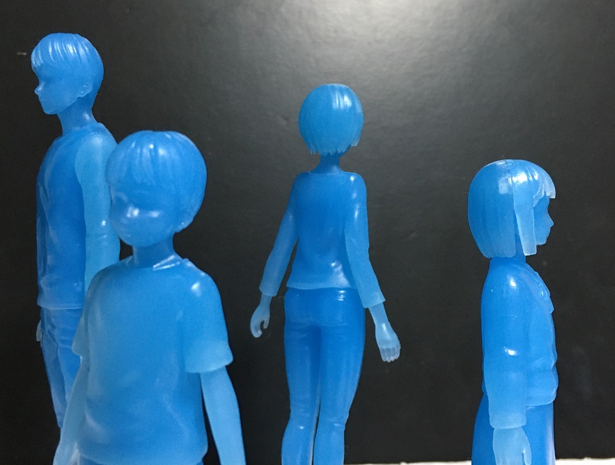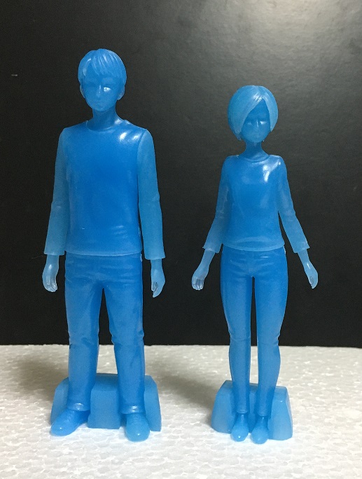 また、それらは衣服を纏ったデザインではなく、顔や足首の造形もシンプル。なので、今回のフィギュアはわりと貴重な「普通の姿をした人間」なのが魅力です。色は青白一色だけど。