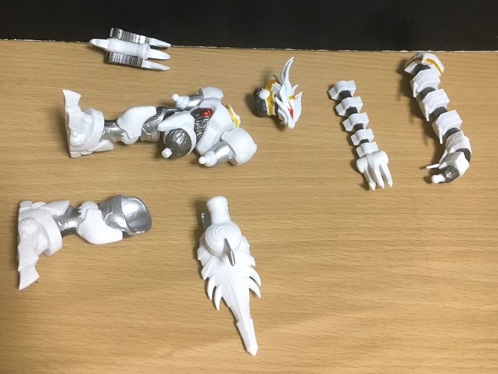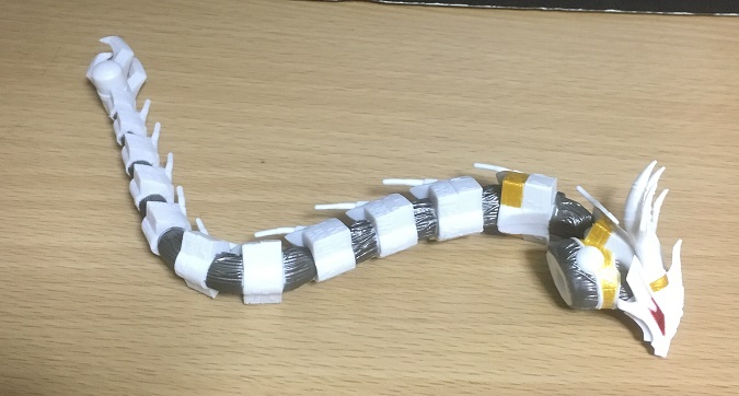 ←は頭部とそれに連なる尻尾を連結した状態。ヘビみたいだ…