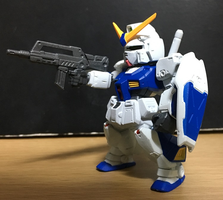 今回の新作は、『0080』劇中では使用していないビーム・ライフルとシールドを装備。プラモデルとかには付属しているので、こちらの方がしっくりくる方もいるでしょう。