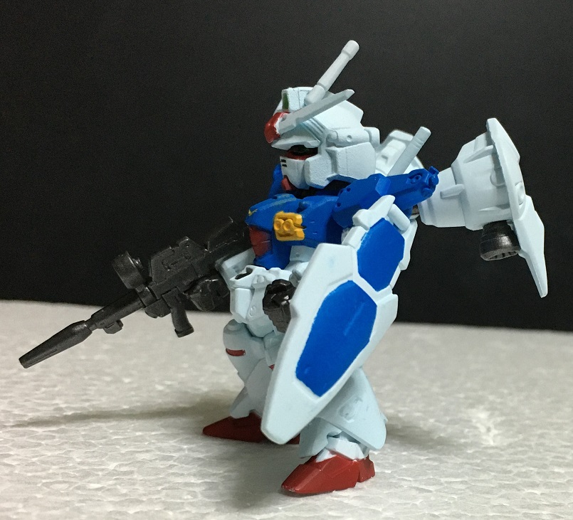 ベース機のGP-01は「換装によって異なる地形に対応する」というコンセプトの機体で、登場時は陸戦仕様でしたが宇宙戦用のオプションに換装すれば宇宙戦闘にも対応できます。しかしその換装が行われる前に、陸戦仕様のまま宇宙戦闘に出撃して本体が大破してしまいます。