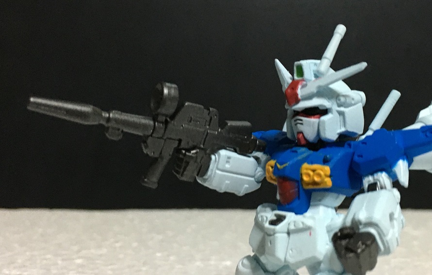 ちなみに一部のゲームではユニットとしての使い勝手を考慮してか、GP-02Aが本来持っていないビーム・ライフルを装備していることがあり、この01用ライフルが採用されたこともあります。