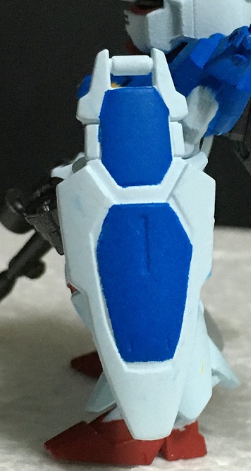 注目してほしいのは、左右の黄色い箇所。地球連邦軍の多くの機体で空冷用のインテークとなってる箇所ですが、純粋な宇宙用のGP-01Fbでは必要ないので、代わりにバーニアが仕込まれています。
