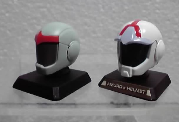 メインのMSは全身ある物と頭部だけの物とがあり、女性キャラの胸像があれば、本編に出てくる組織のバッヂや、マ・クベの北宋の壺とか、アムロの実家にあった怪しい人形なんてものもありました。ヘルメット2つは、有りそうで無かった、いいチョイスだと思います。