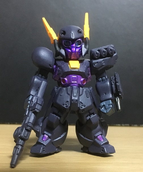 デナン・ゲーを始めとする「黒の部隊(ブラックバンガード)」仕様の機体ですが、外見は一般機とカラーリングが違うのみで、性能面でも違いは無いかと思われます。