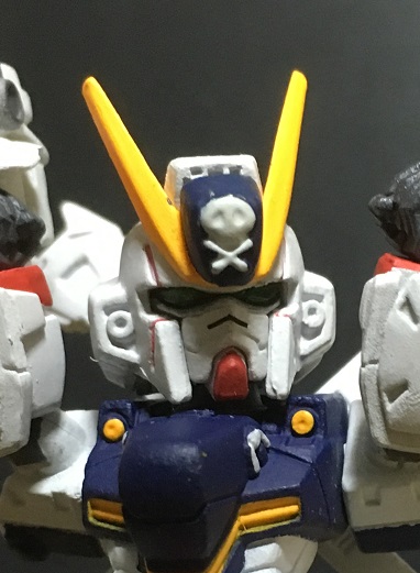 「宇宙海賊」を自称するクロスボーン・バンガードらしく、頭部の骸骨の装飾があるのが特徴。