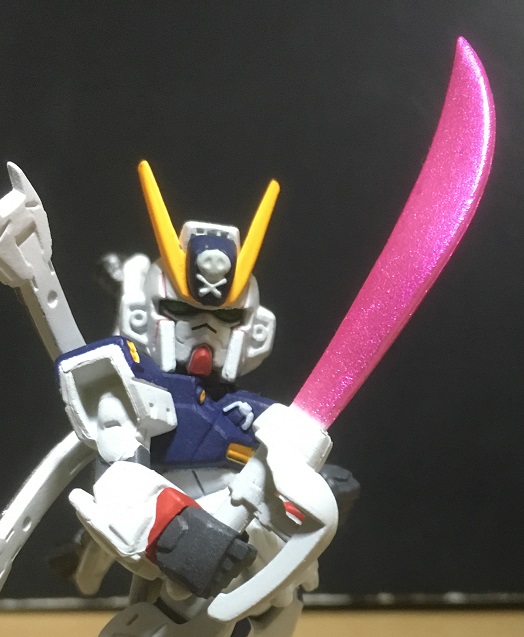 粒子加速式ビーム・サーベルで、出力にモノをいわせて敵機をビーム・シールドごと斬ることができる程の威力を誇ります。X1のメイン・ウェポンといえ、これがあるので通常のビーム・サーベル2本はあまり使われません。(※パイロットの戦法が巧みなので、全く出番が無いわけでもない)