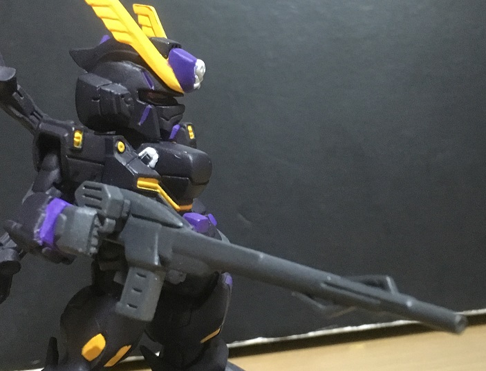 X2の方は、ガンダムF90Ⅱ(Lタイプ)の持つロングレンジライフルと似た形状です。U.C.0121にロールアウトした機体の装備の改良品といったところでしょう。