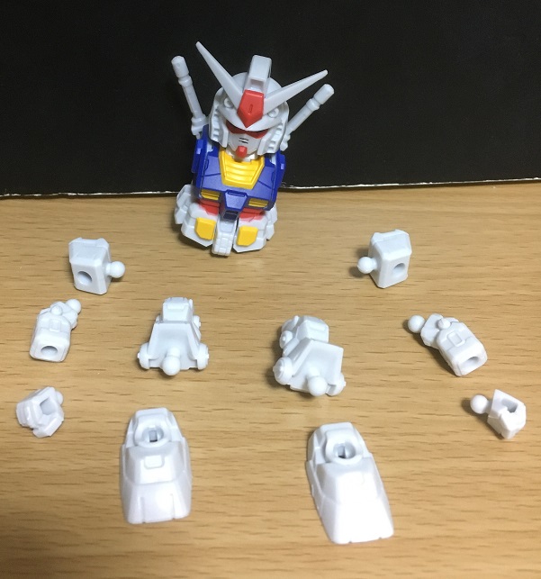 ザク同様、胴体と頭部は組み立て&塗装済み。ザク以上に色数が多いので、塗装済みなのがホントにありがたい。