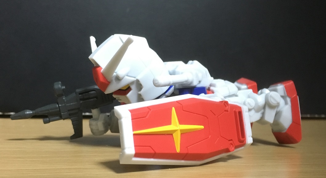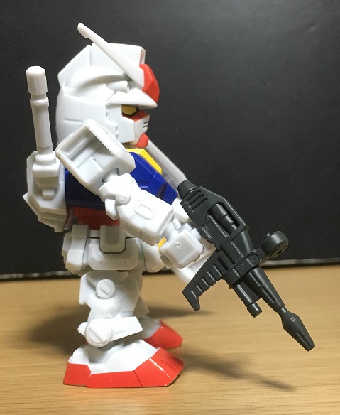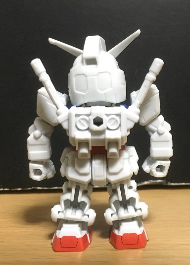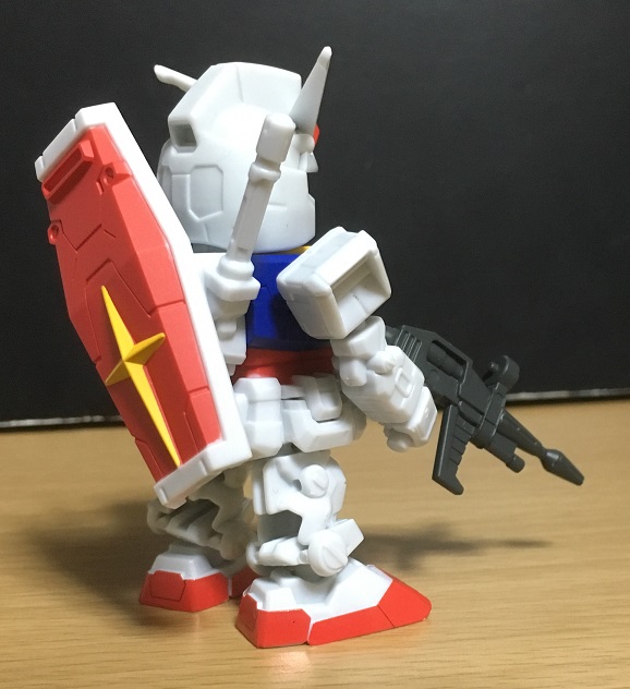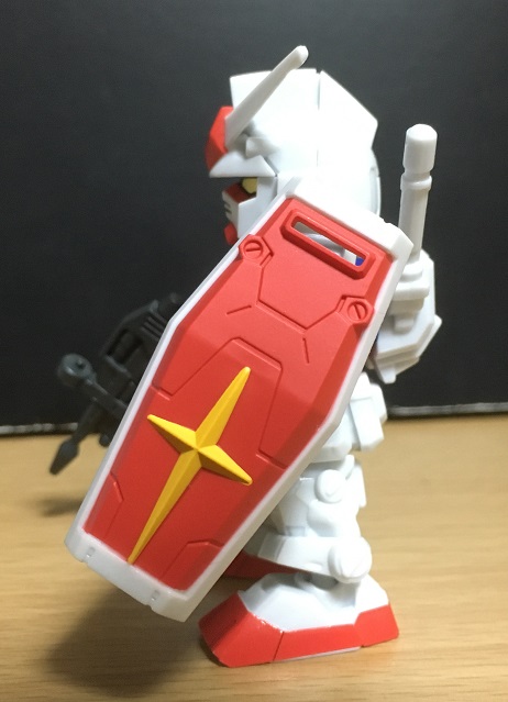 グリップをはずし、ピンを背中の穴に際込めば、おなじみのシールドを背負ったガンダムに。