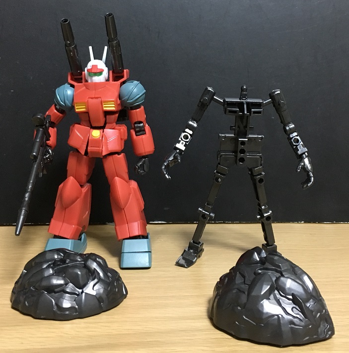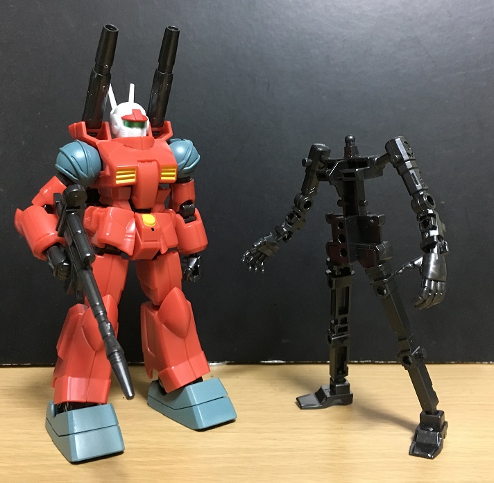 「あと、アーマーをフレームに敢えて付けない、あるいは最小限に抑えて、その状態で遊ぶのも楽しい。ガンキャノンから離れて、よく分からんキャラとして遊ぶのよ」