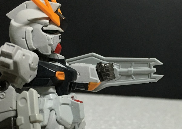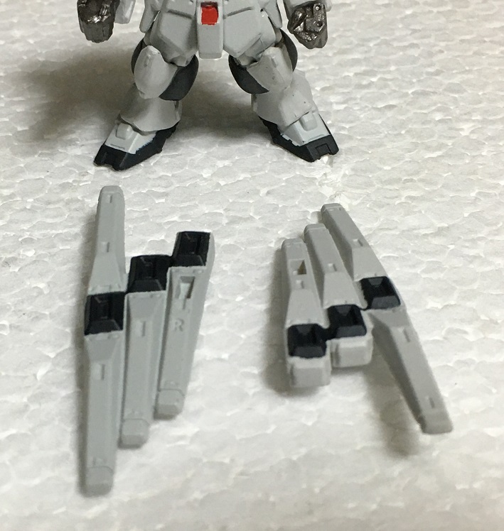 右側にも取り付ける関係で、元の機体のその位置にあったビーム・サーベルは取り外されています。