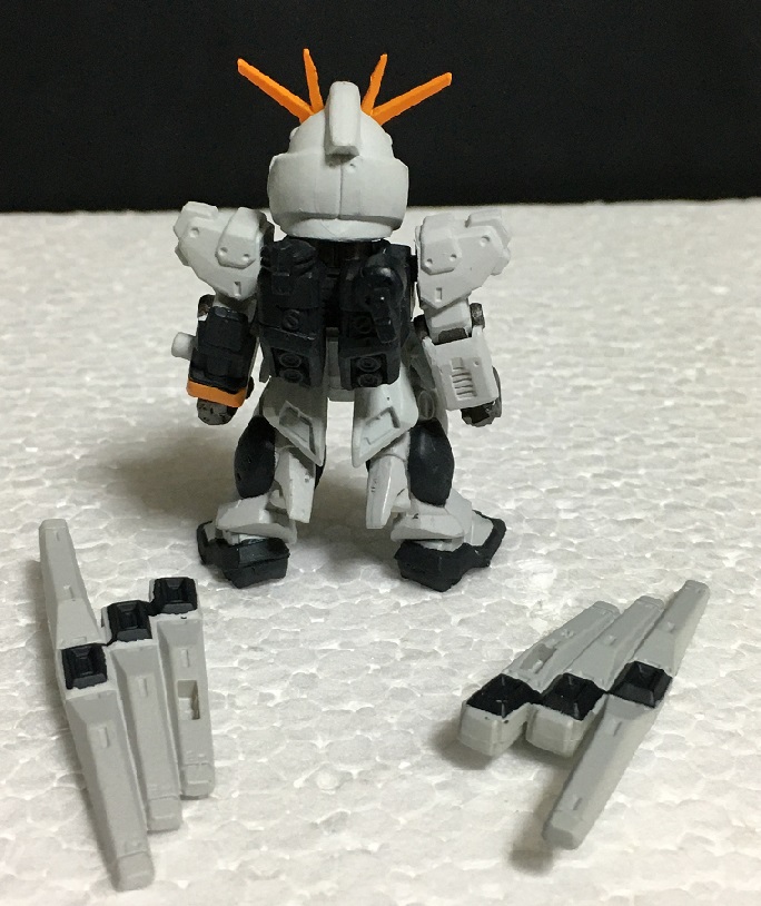 他にもいくつか変更点があるのですが、詳しくはググっていただくとして、これらの違いは商品によっては再現されない事もあります。通常のνガンダムのパーツを一部流用する都合でオミットされたのだと思われ、中にはνガンダム自体のデザインはほぼ変更なしの商品も。