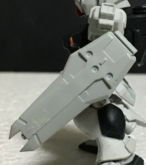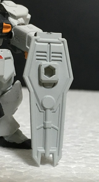 アムロのパーソナルマークが描かれていないことをあって、白一色の盾は独特の雰囲気。