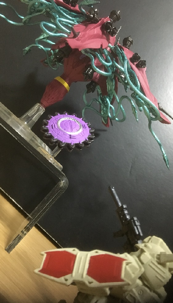 もちろんそれを補う為に、補助推進装置も装備(背部と脚部)されています。「機動性は損なわれていない」 とされていますが、さすがに運動性は落ちているものと思われます。