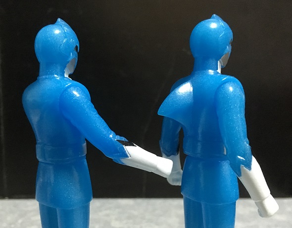 両腕(又は片腕)のパーツのみが違うというのは、ソフビ人形のヴァリエーション違いで特に多いです。武器を持ってたりとか、ポーズが付いて物になってたりとか。
