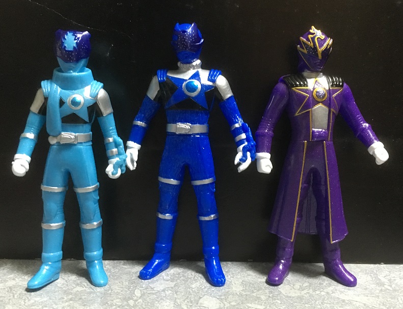 あと、キョウリュウシアンの時も思いましたが、これまで「~ブルー」「ブルー~」と名乗っていても、水色寄りのスーツの人達も結構いました。そのうちスカイブルー系統に入れられるようになったりして?