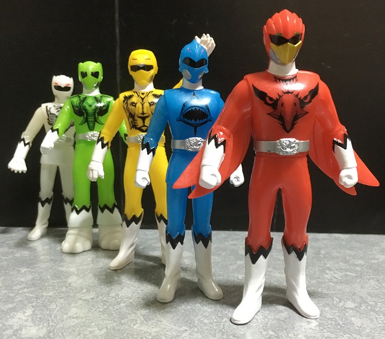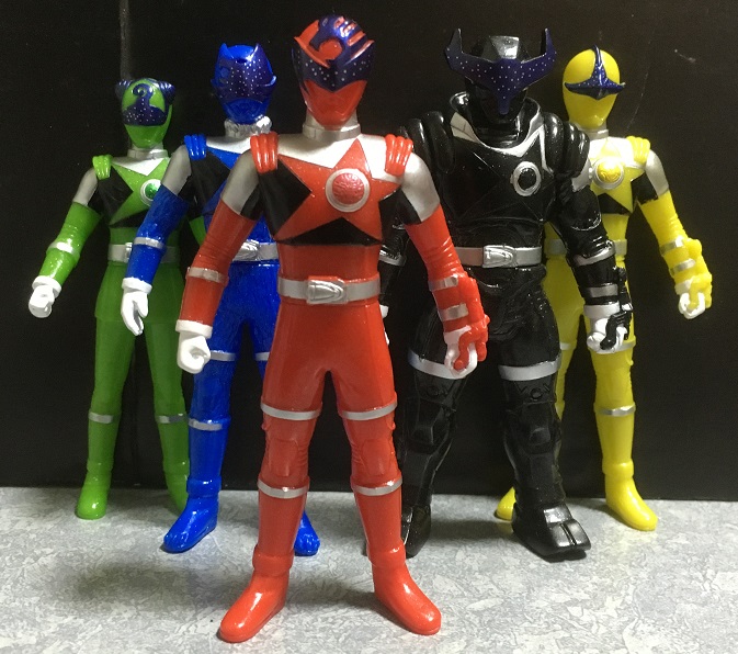 まずはオーソドックスな色のメンバーが登場…なのですが、この5色の組み合わせは『ライブマン』(後期)と『ゴーオンジャー』(5人時)だけなので、ちょっと特殊な組み合わせにも思えます。