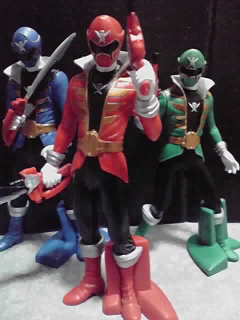 一枚目の画像は、ゴーカイレッド、ゴーカイブルー、ゴーカイグリーンです。