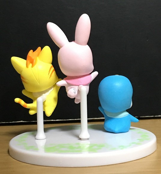 ポーズが片脚立ちなので台座必須です。…といっても、他2人も台座無しだと立たせづらいんですけどね。