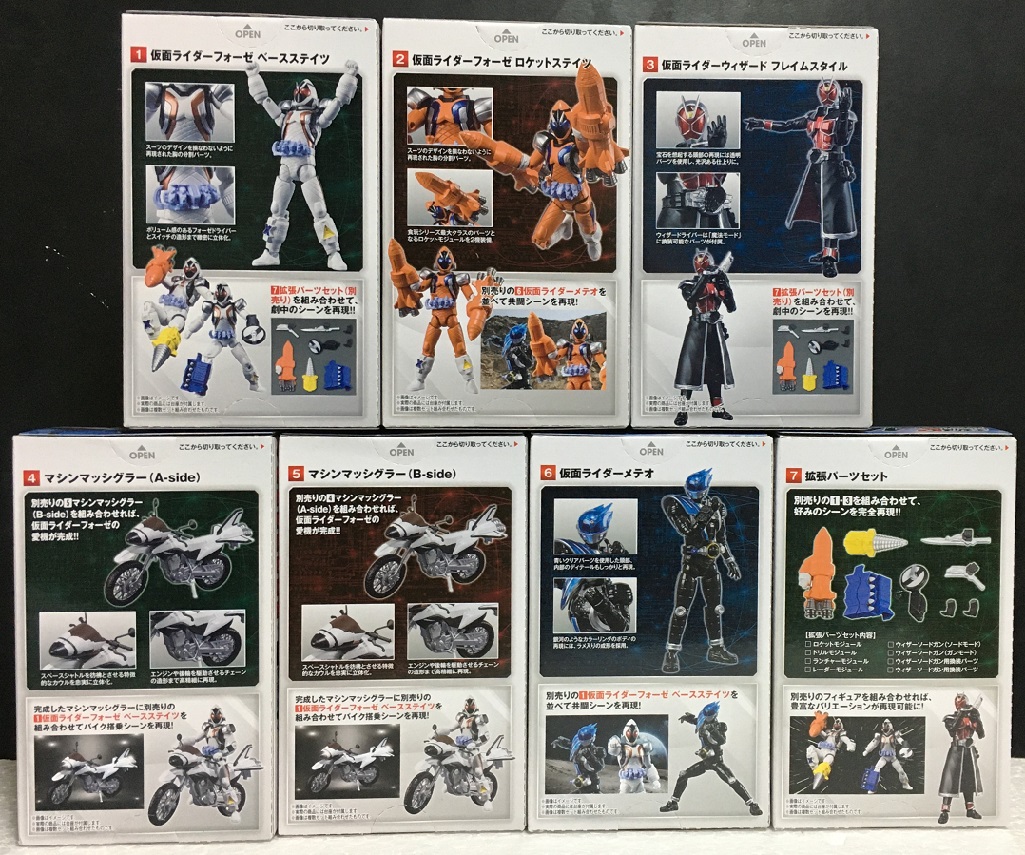 『仮面ライダーフォーゼ』の主役とその愛車、強化フォーム、2号ライダーに加え、『仮面ライダーウィザード』からも主人公が登場。所謂「平成ライダー2期」の主人公が2人一気に増えました。