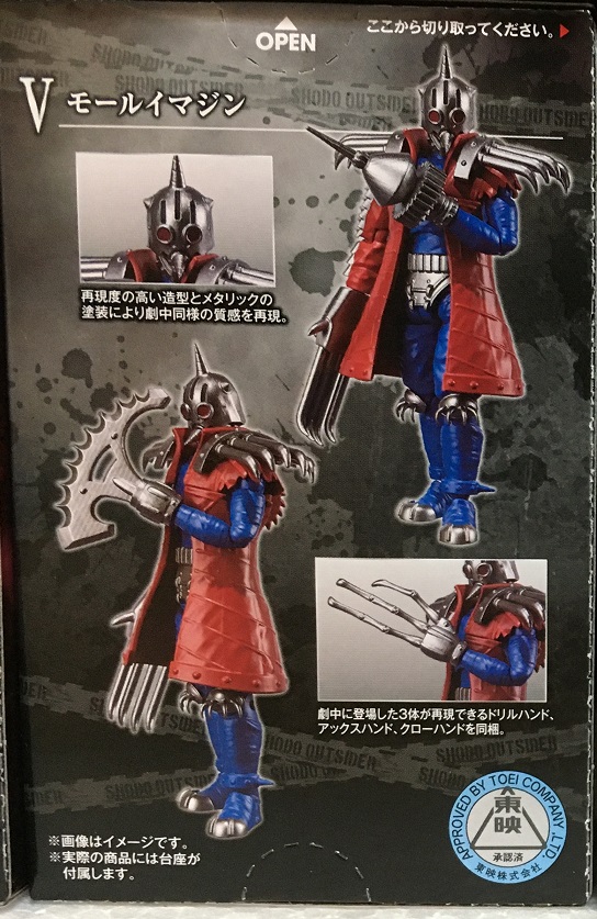 モールイマジンは左腕パーツを交換することで別個体にすることが可能。アックスハンド、クローハンド、ドリルハンドの3体となります。