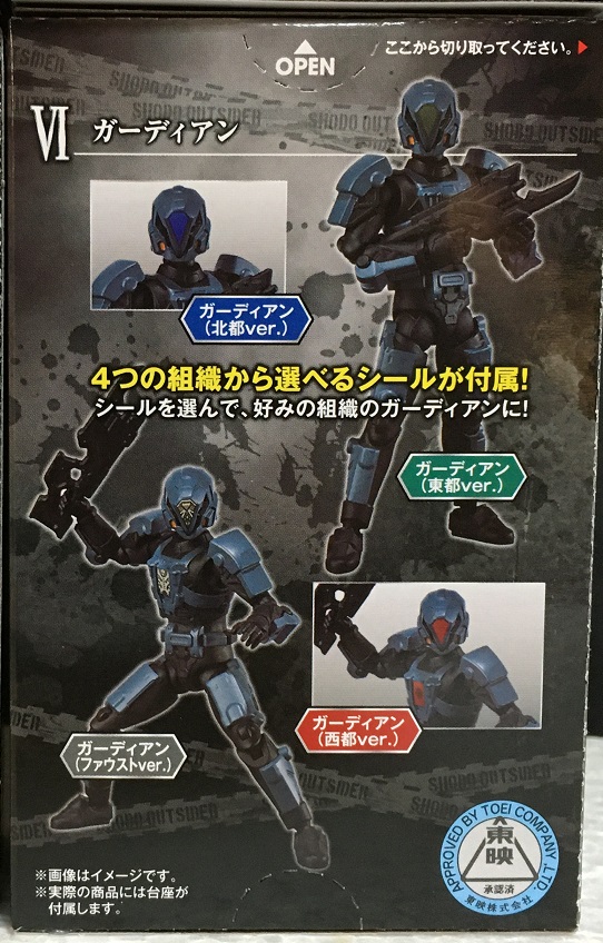 ガーディアンは頭部と胸部のシールを4種の中から選んで貼ります。シールは「ファウストver.」、「東都ver.」、「西都ver.」、「北都ver.」、それぞれの仕様のデザインになっています。貼ったシールによって、所属する組織が違うガーディアンにすることができます。