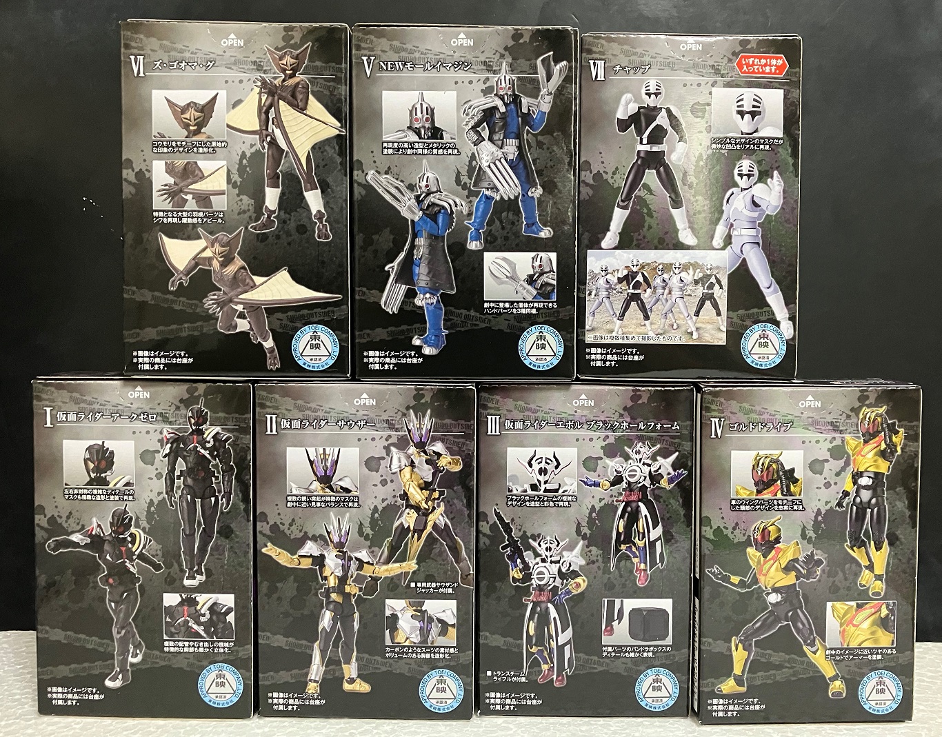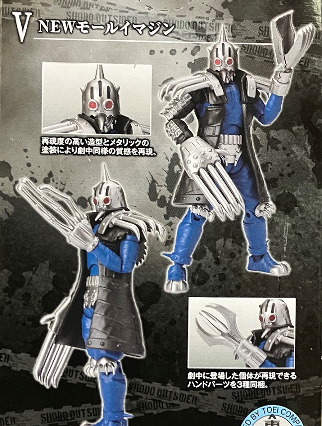 ↑の画像のNEWモールイマジンなど、左腕のパーツを交換することで3人の別個体にできる(※「SHODO-O8」のモールイマジンのパーツも使えば5人の別個体にする事が可能)という複数買い需要があるのに、アソート1固定。