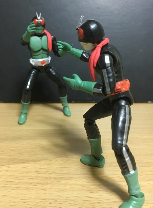 1号は新1号になってからはこっちではなく「ライダー変身!」のポーズを取るようになりますが、新1号にはそのポーズの方が力を発揮できるのだろうと推測されます。