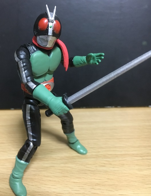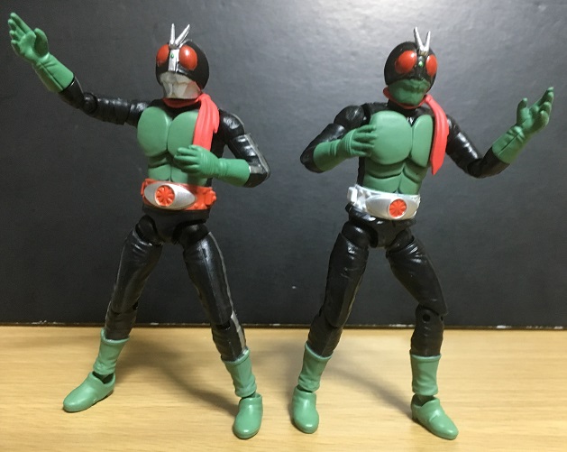 旧1号よりも、仮面の緑や目の赤さが濃くなっている印象があります。