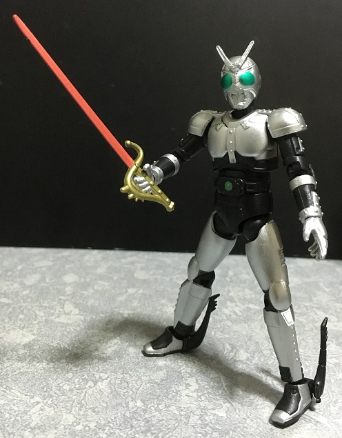 BLACKにはサタンサーベルは付属しませんが、武器持ち用の手首パーツがあり、シャドームーン付属のサタンサーベルを持たせることが出来ます。こういう連動要素って、遊び甲斐があって好きです(^^)