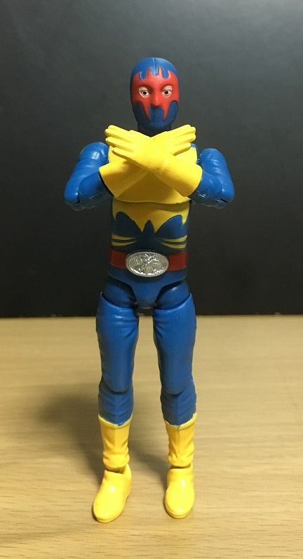 右腕をまっすく斜め上に掲げるショッカーの戦闘員に対し、ゲルショッカーでは両腕を体の前面でX字型に構えるポーズを取る。ホントは両手首の辺りで交わったX字なのだが、私のポージングだと画像のが精一杯だ(~_~:)