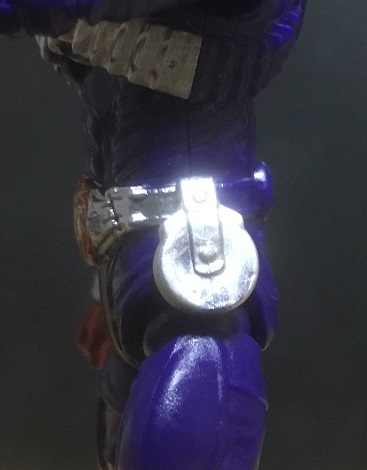 ベルトの左側面に吊るしているのはディスクアニマル(以下DA)です。普段は円盤状ですが、↑の変身音叉 音角を使って起動すると折りたたまれて動物を模した形に変形します。その際、銀色一色だったのが各DAごとの色に変化します。戦闘時のサポートの他、録音・録画機能を利用した情報収集にも使えます。腰にぶら下げているDAは3枚であることが多く、任務に合わせて携行する物を変えていた…と思います(^^;)