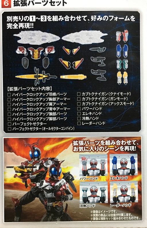 1個あれば充分なので私みたいに1BOX買いする人間だと持て余してしまいますが、これが店頭バラ買いするとしたら話が違ってきます。スーパー1、カブト、ハイパー各2個・計6個をそれぞれ別々の人が買うとして、更にその人達が全員拡張パーツも欲しいとしたら――!?
