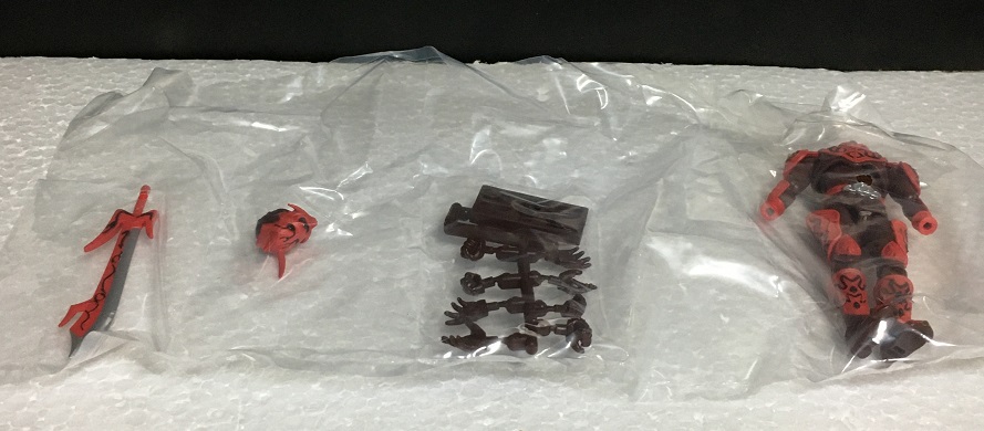 頭部と手首パーツを取り付けたら完成するのですが、その頭部にツノがあり、更に肩にもツノがあるので、頭部の取り付けでツノが刺さったり折ってしまわないかとハラハラしました。