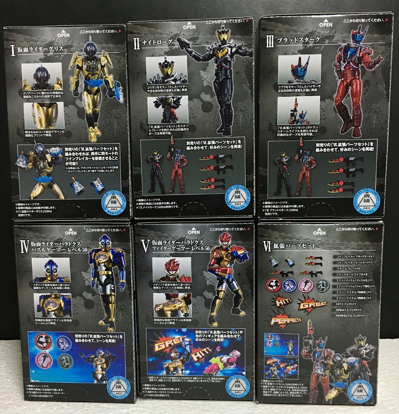 「X6」(こちらをクリック)でアギトが5フォーム登場というのもありましたが、アレはパーツ交換で再現できるというもので商品としては3つでした。同一人物が一度にラインナップされた数としては、今回のゲンムが最多となります。