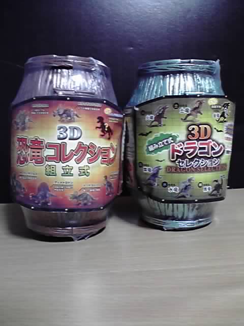 100均のSeriaで売ってた「3Dドラゴンセレクション」という商品で、樽型のケースに入って販売。中には組み立て式のドラゴンのフィギュアが入っています。