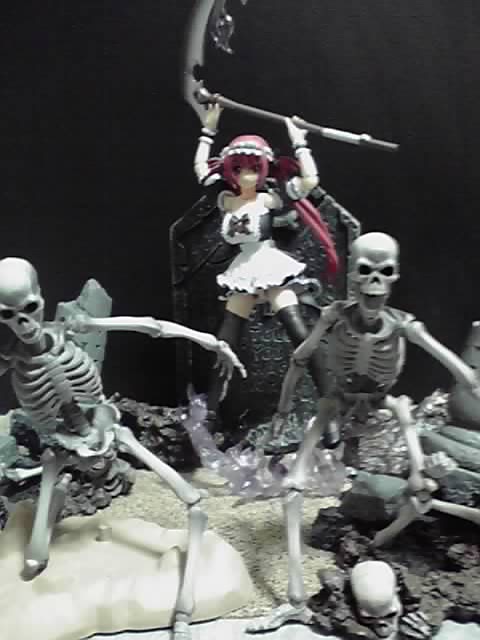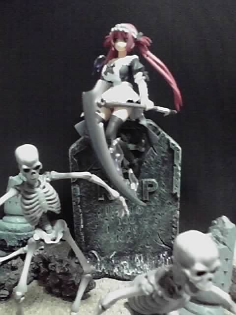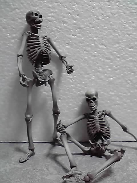 手前にいるガイコツ達は、特撮リボルテックの骸骨剣士(2ndバージョン)です。伝説のストップモーションアニメの最高傑作『アルゴ探検隊の大冒険』に登場する骸骨剣士たちのフィギュアなのですが、単なるガイコツキャラとしても使えます。