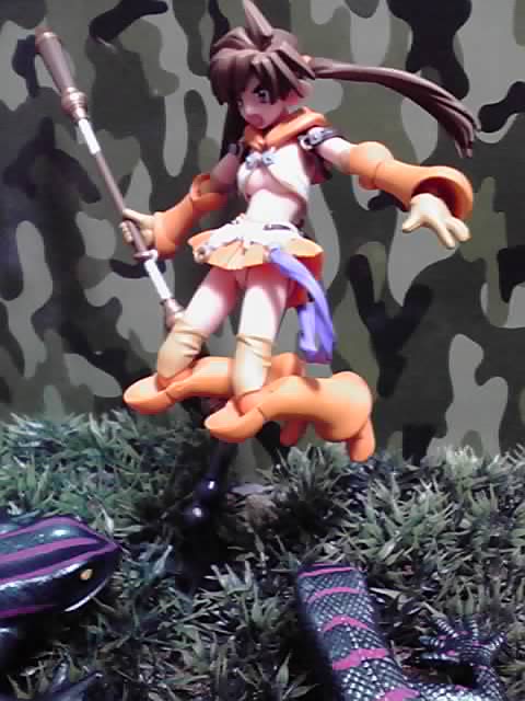 カトレアさんというと、息子ラナを守りながら戦う「母親」としての一面もありますが、残念ながらラナはリボでは付属しません。もしラナのフィギュアがあれば、庇うシチュになったかも?(もっともその場合だと、アレインの画像と被っていたでしょうが(^_^;))